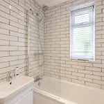 Bathroom facilities also include a shower. There are bath sheets for guests' comfort.
